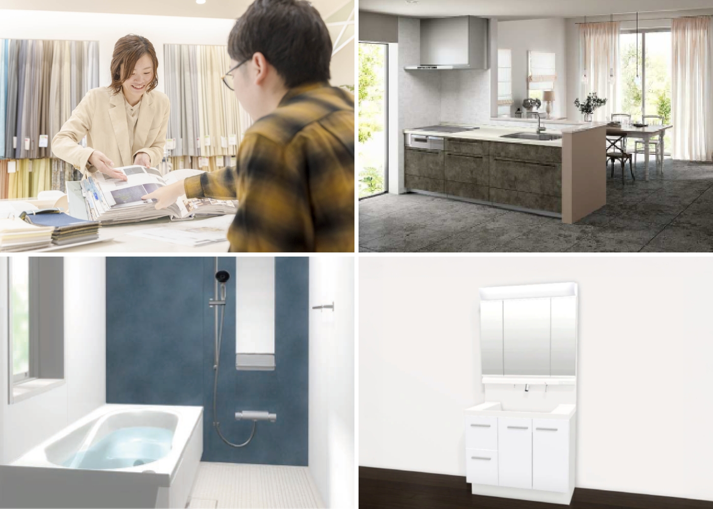 工事前のお家であれば、キッチン・バス・クロス・床材など、こだわりたいポイントを自由にカスタマイズできます。